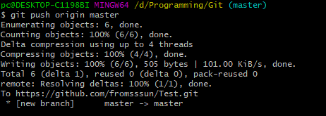 이후 git push orgin master를 실행하여, 로컬저장소에 있는 커밋들을 원격저장소에 올려준다.